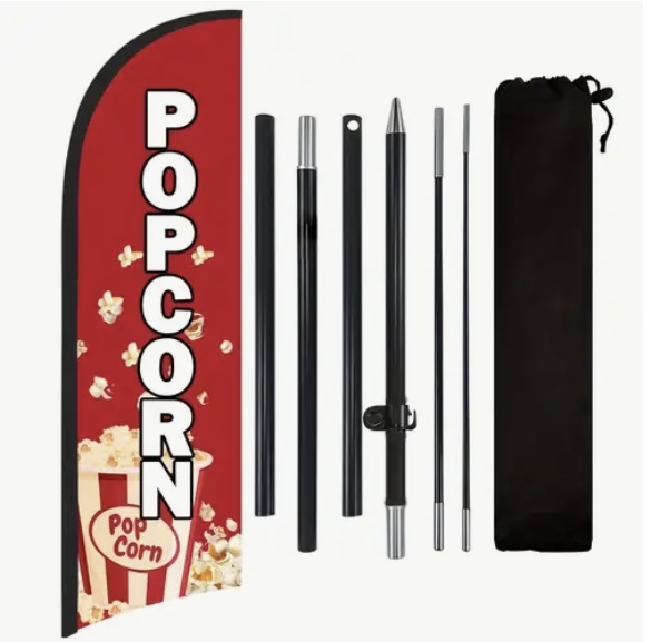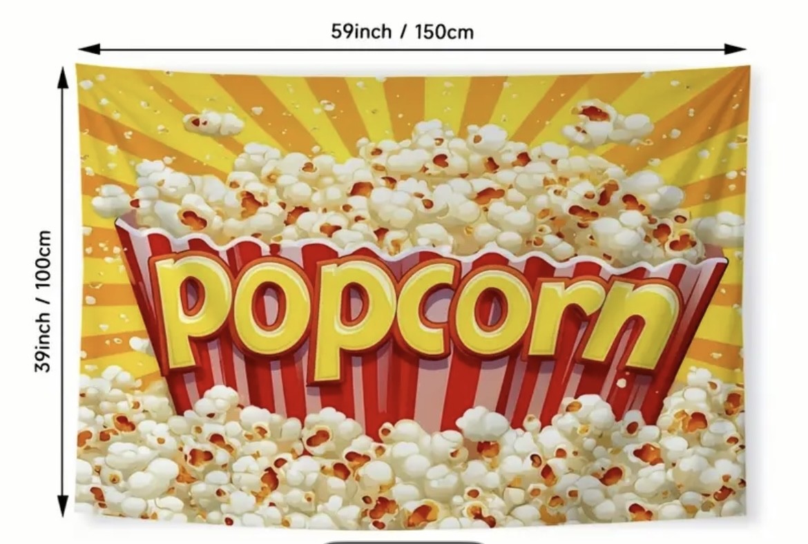 Fin reklamebanner til å henge på veggen hvor du skal servere Popcorn.